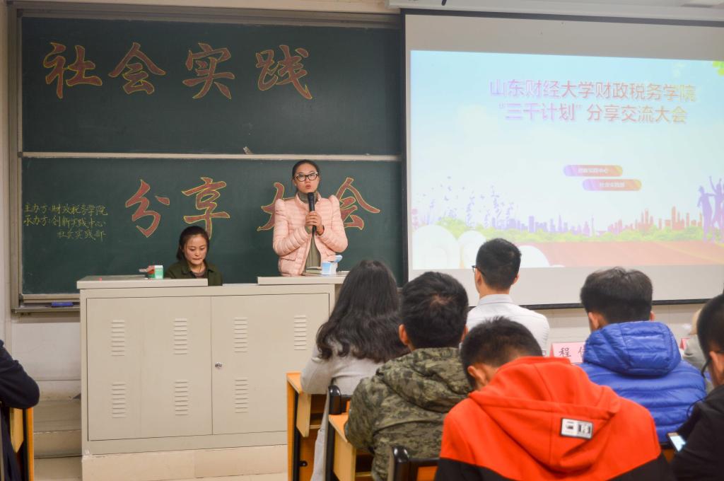 这次分享大会不仅让同学们了解到了“三千计划”社会实践活动的具体流程,也深刻体会到了这一活动的重大意义。相信2017级财税学子定能以饱满的热情和严谨的态度积极投入社会实践活动中去。(通讯员: 孔凡非 田思齐 周梦菲)
